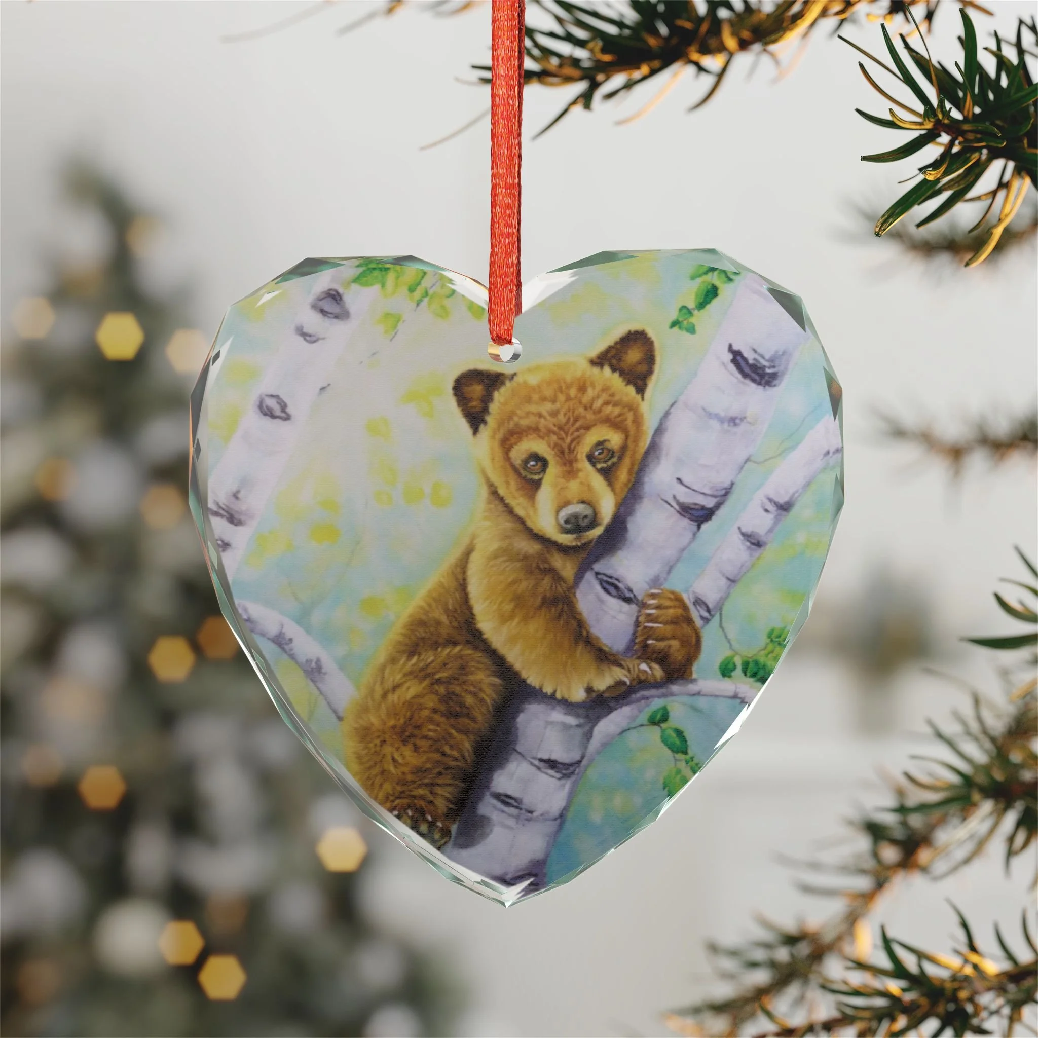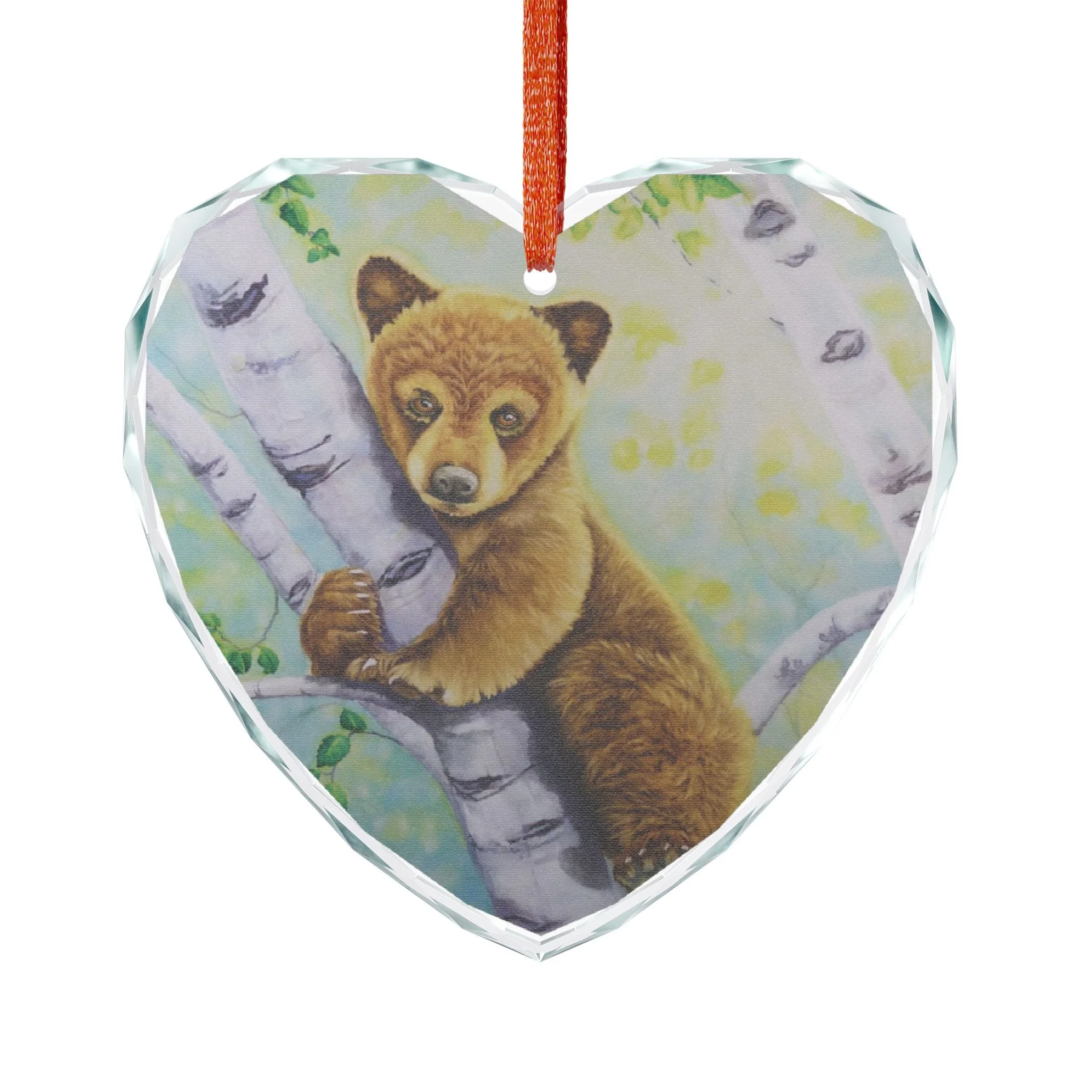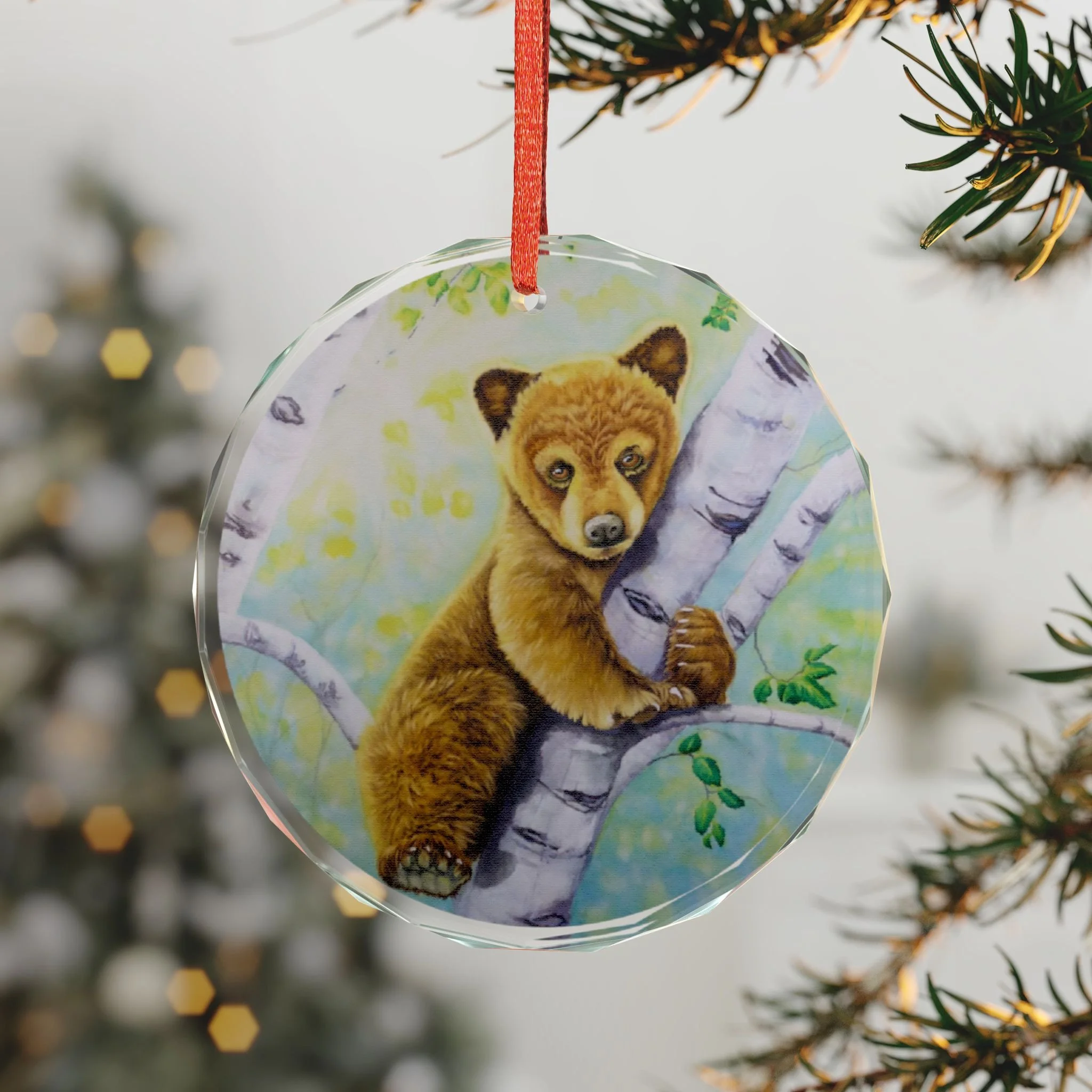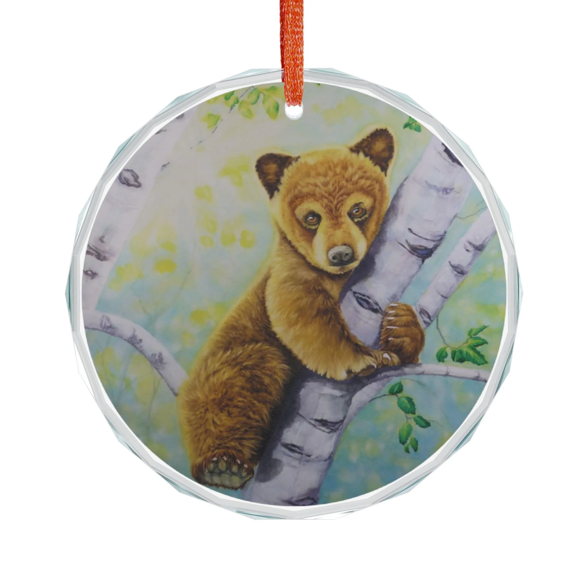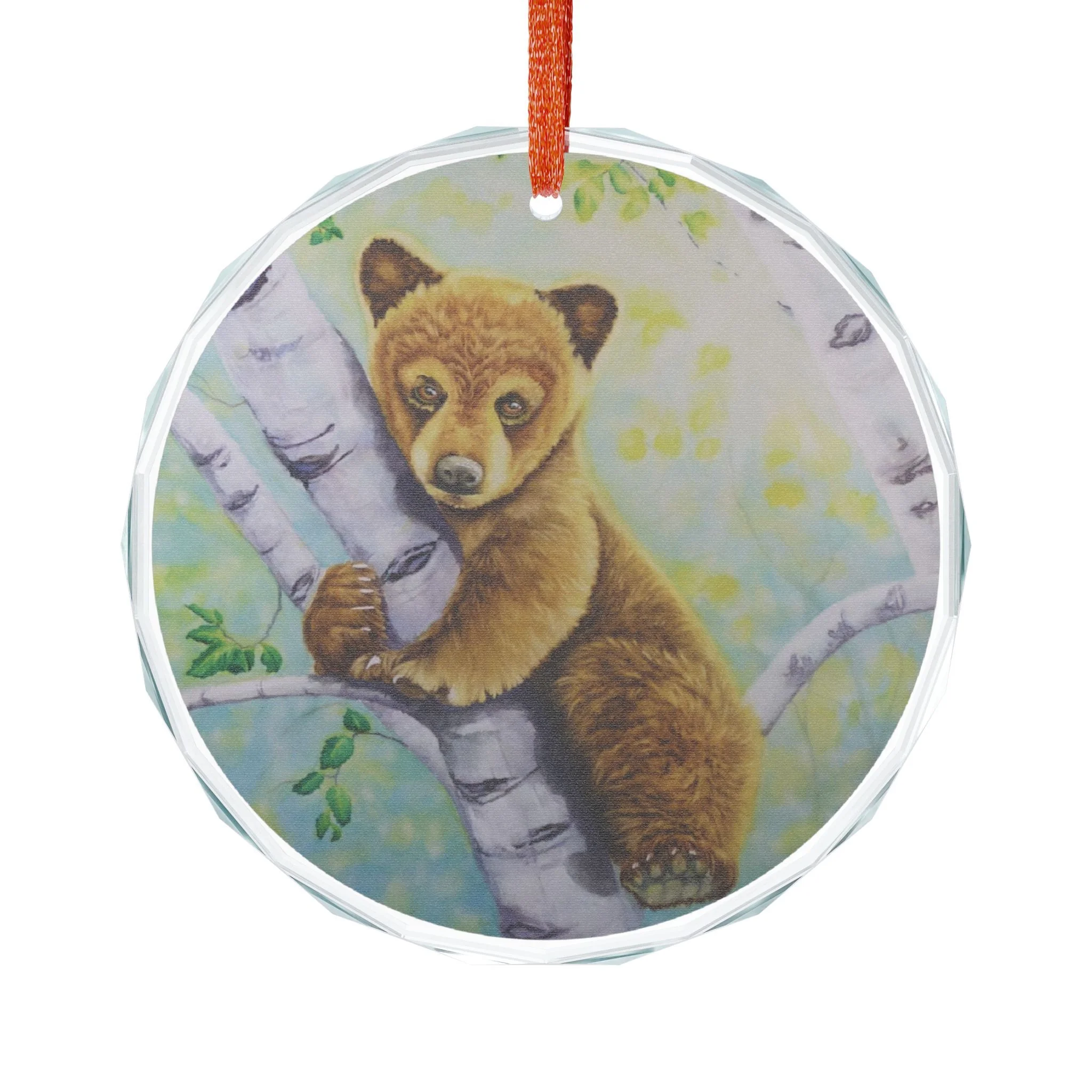 Bear cub Crystal Ornament — Adorable Bear Cub in Birch Forest Holiday Decoration
