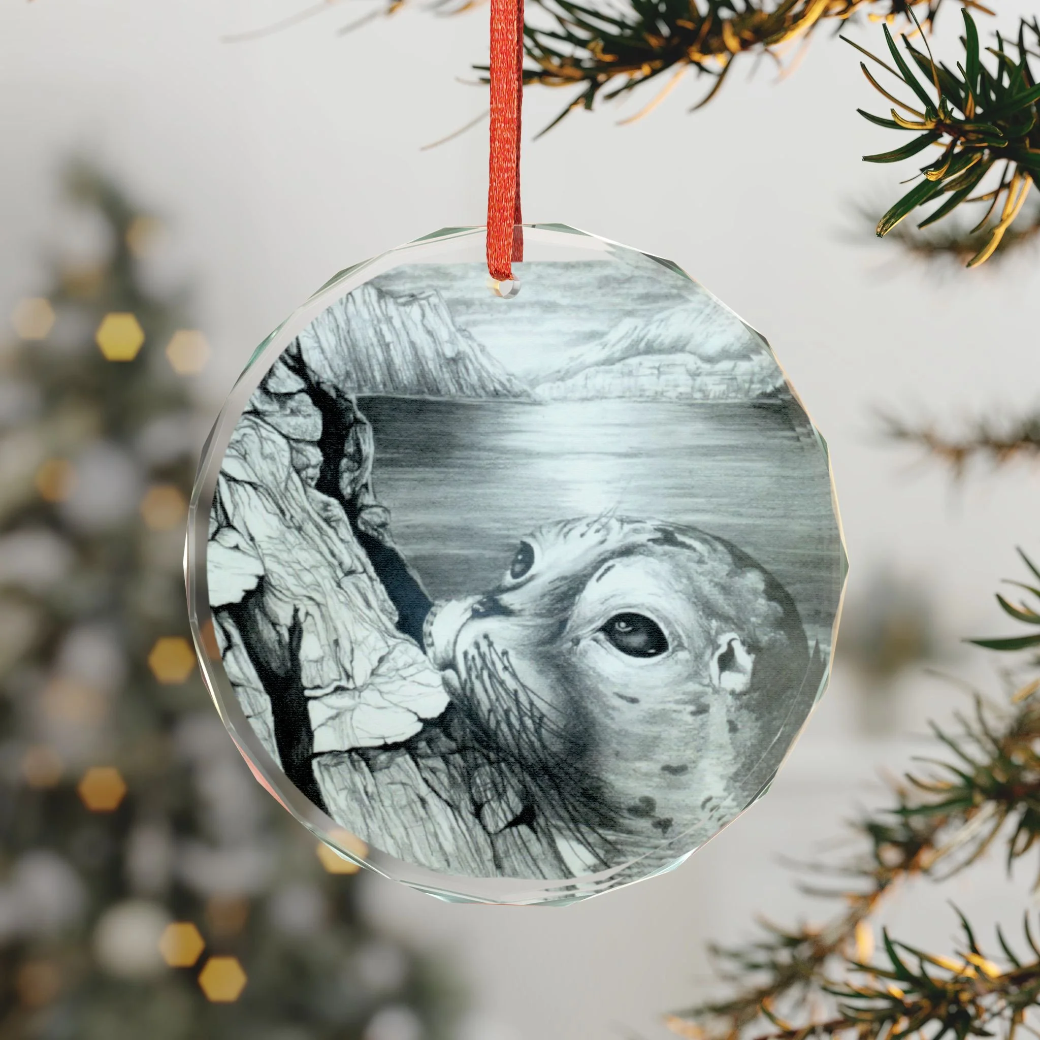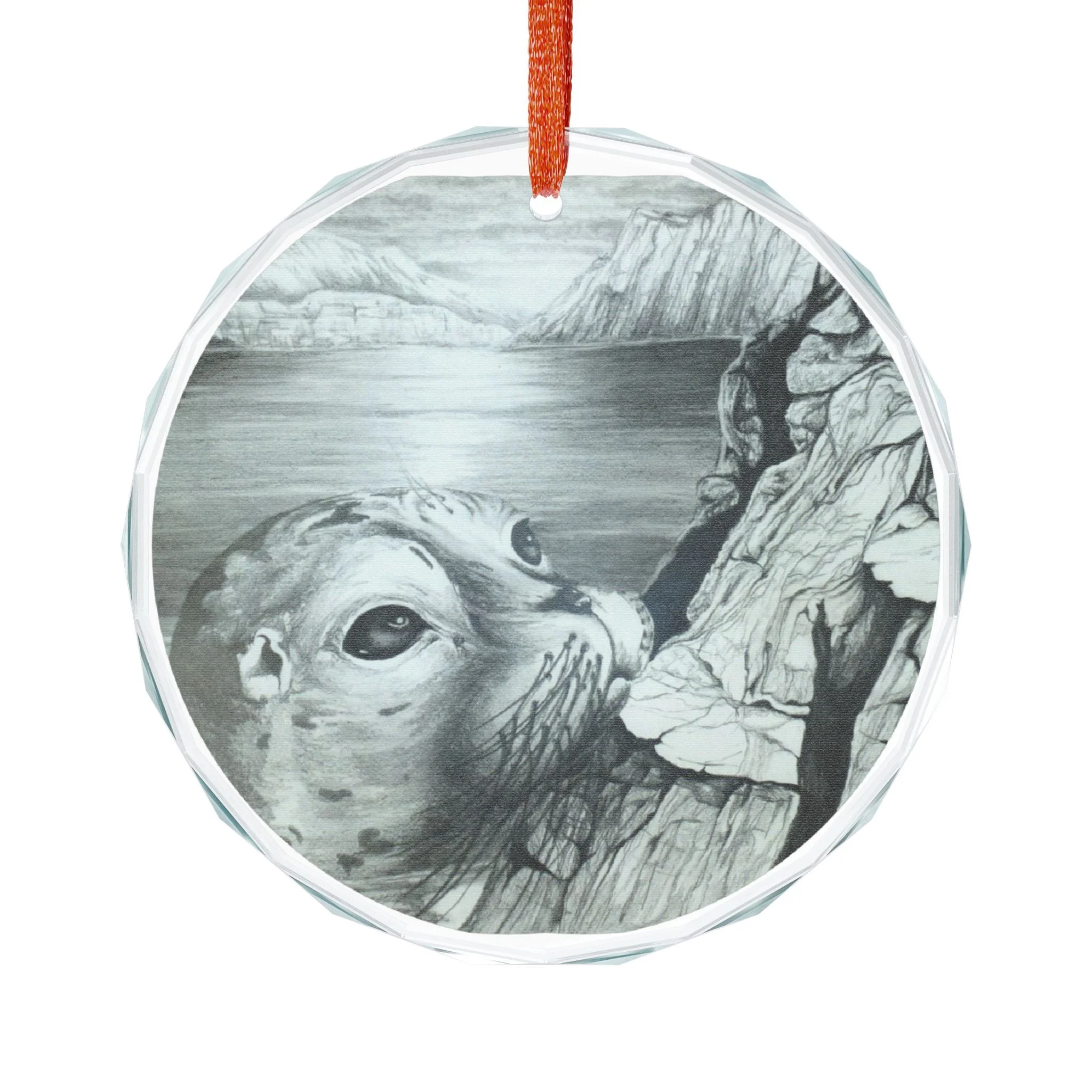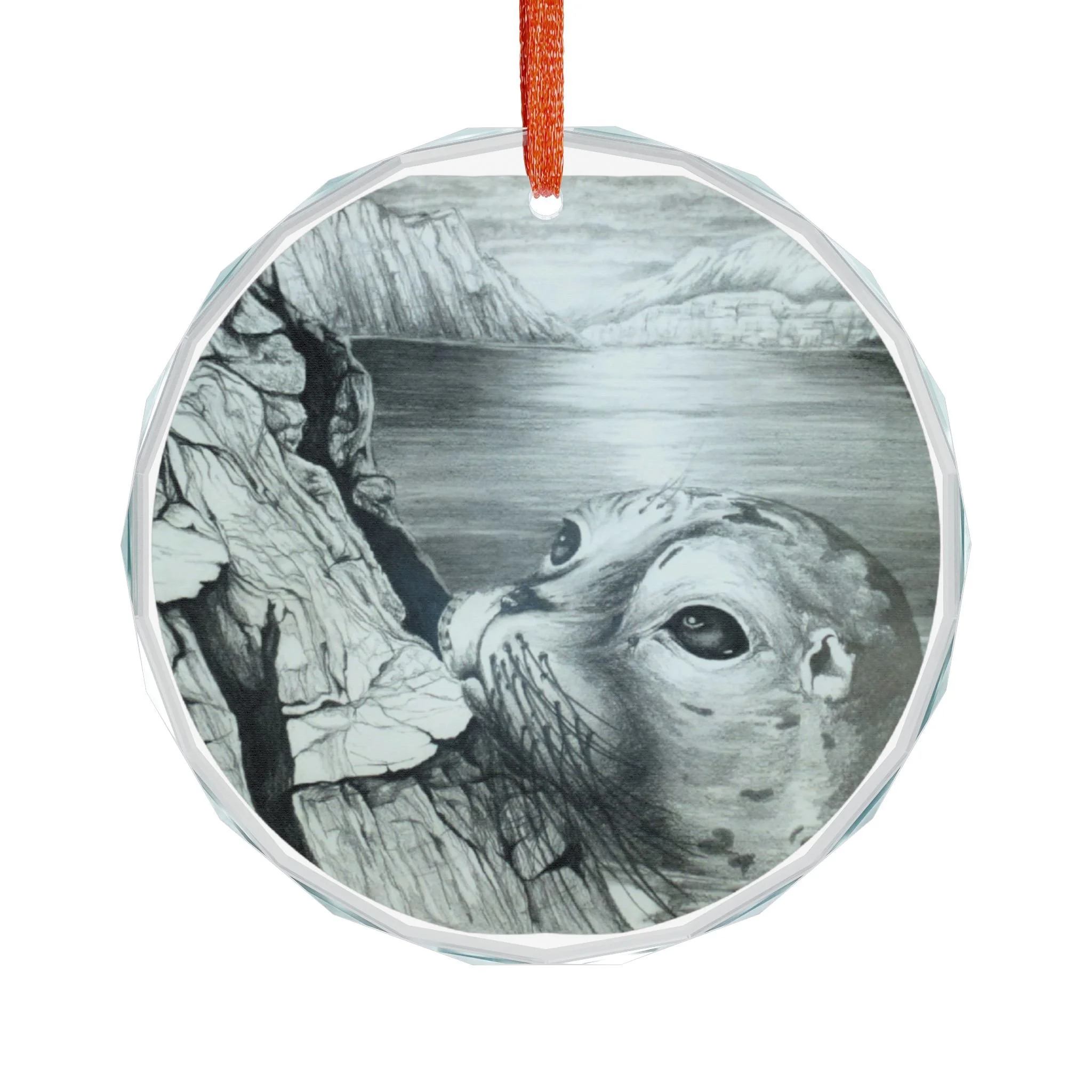 Harbor Seal Crystal Ornament — Hand-Drawn Seal Pup Keepsake