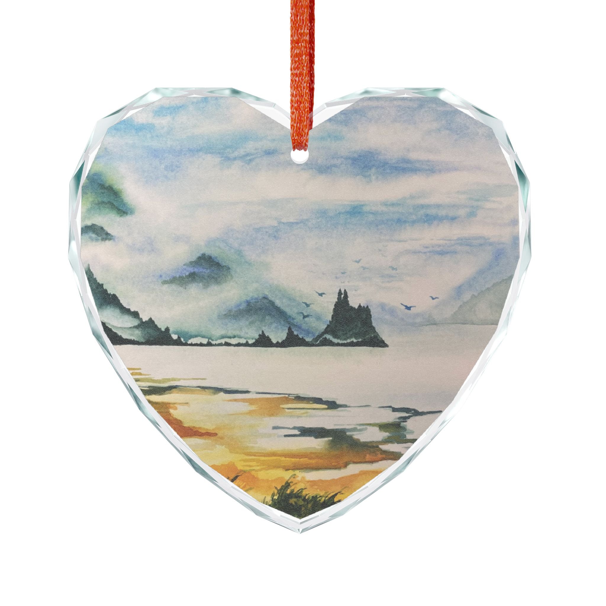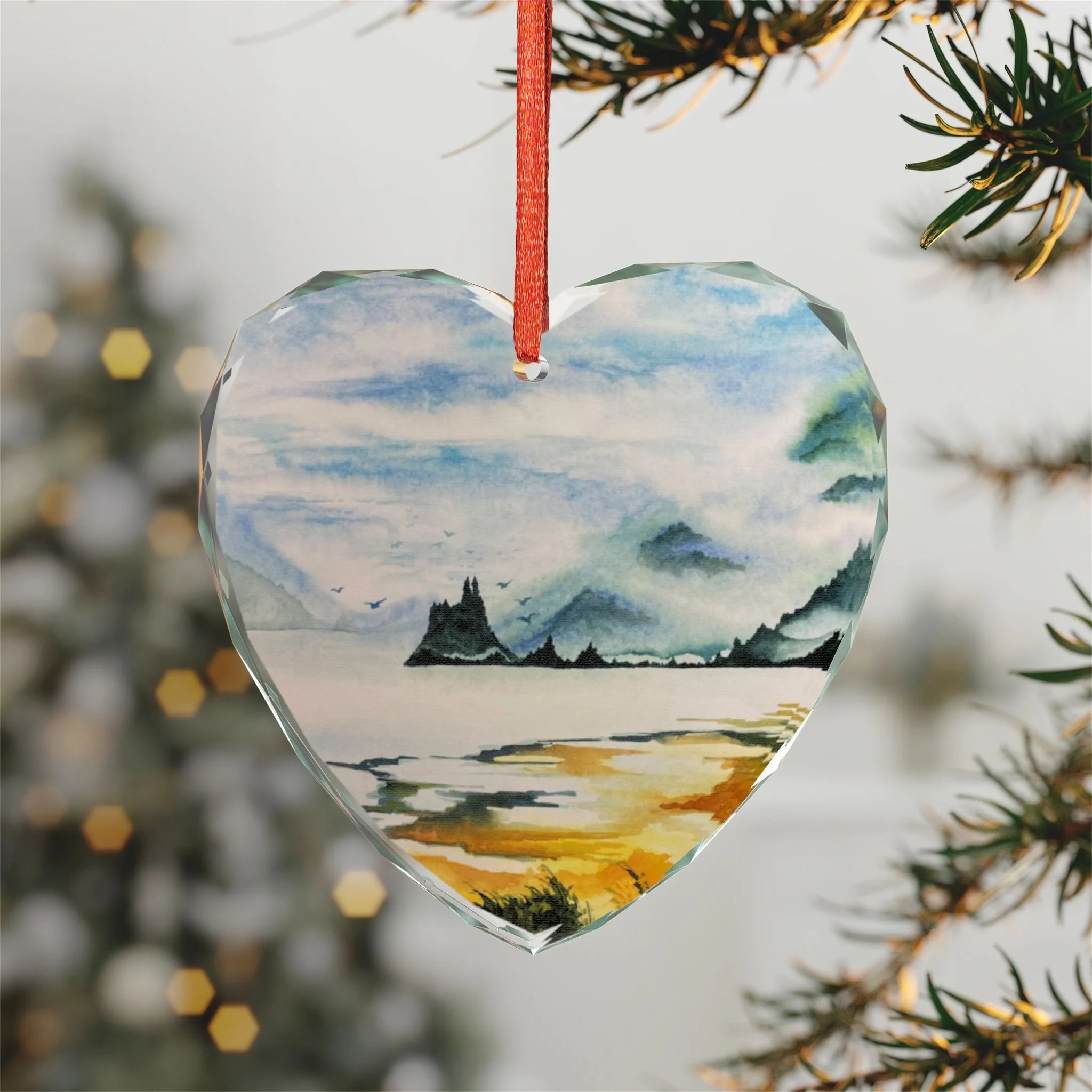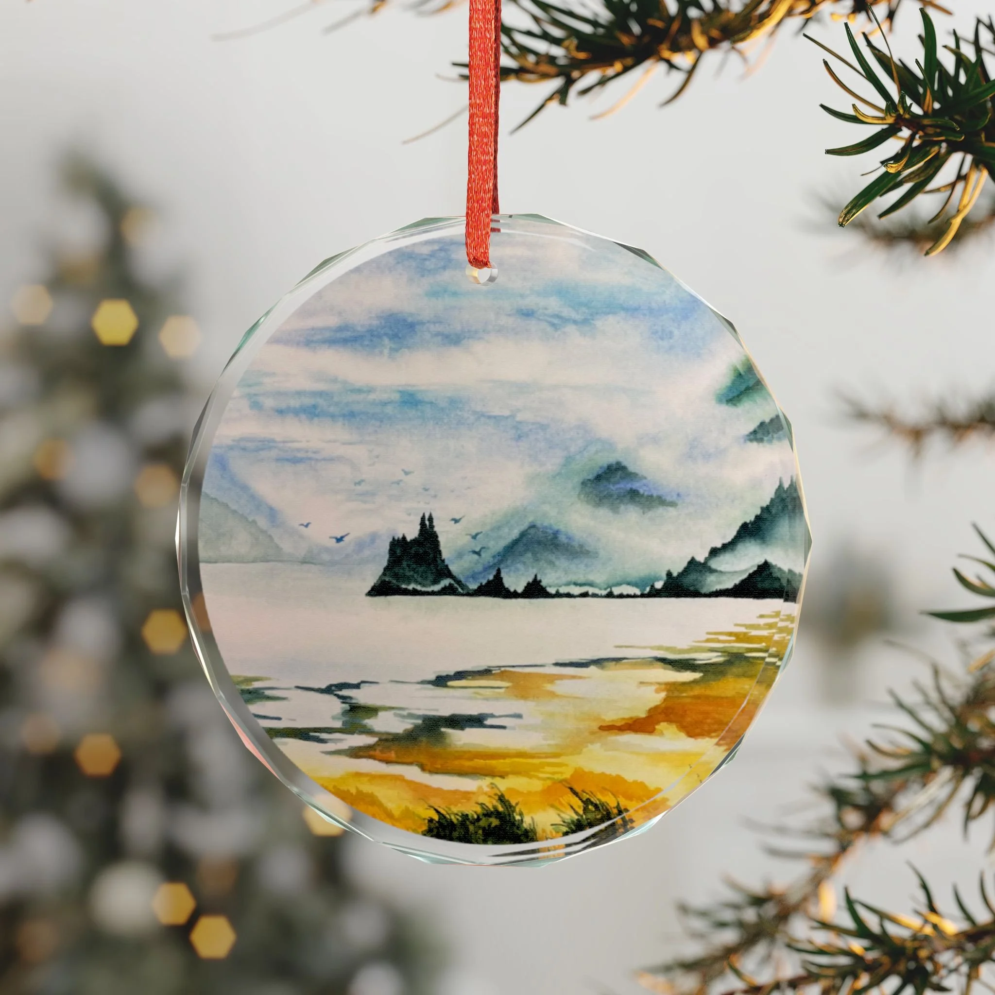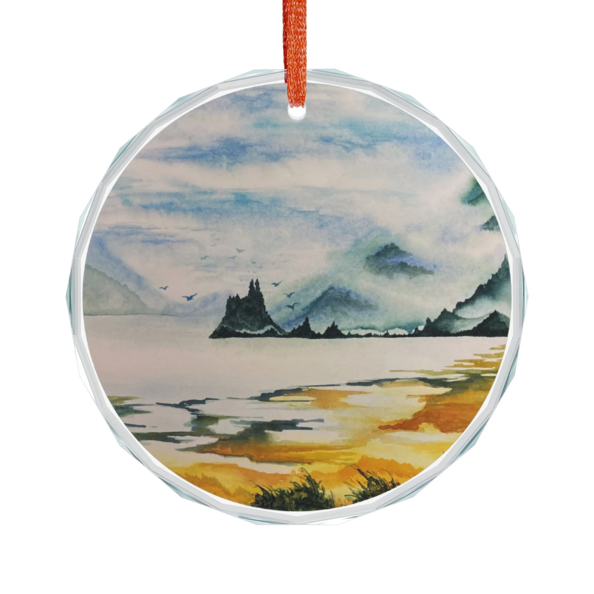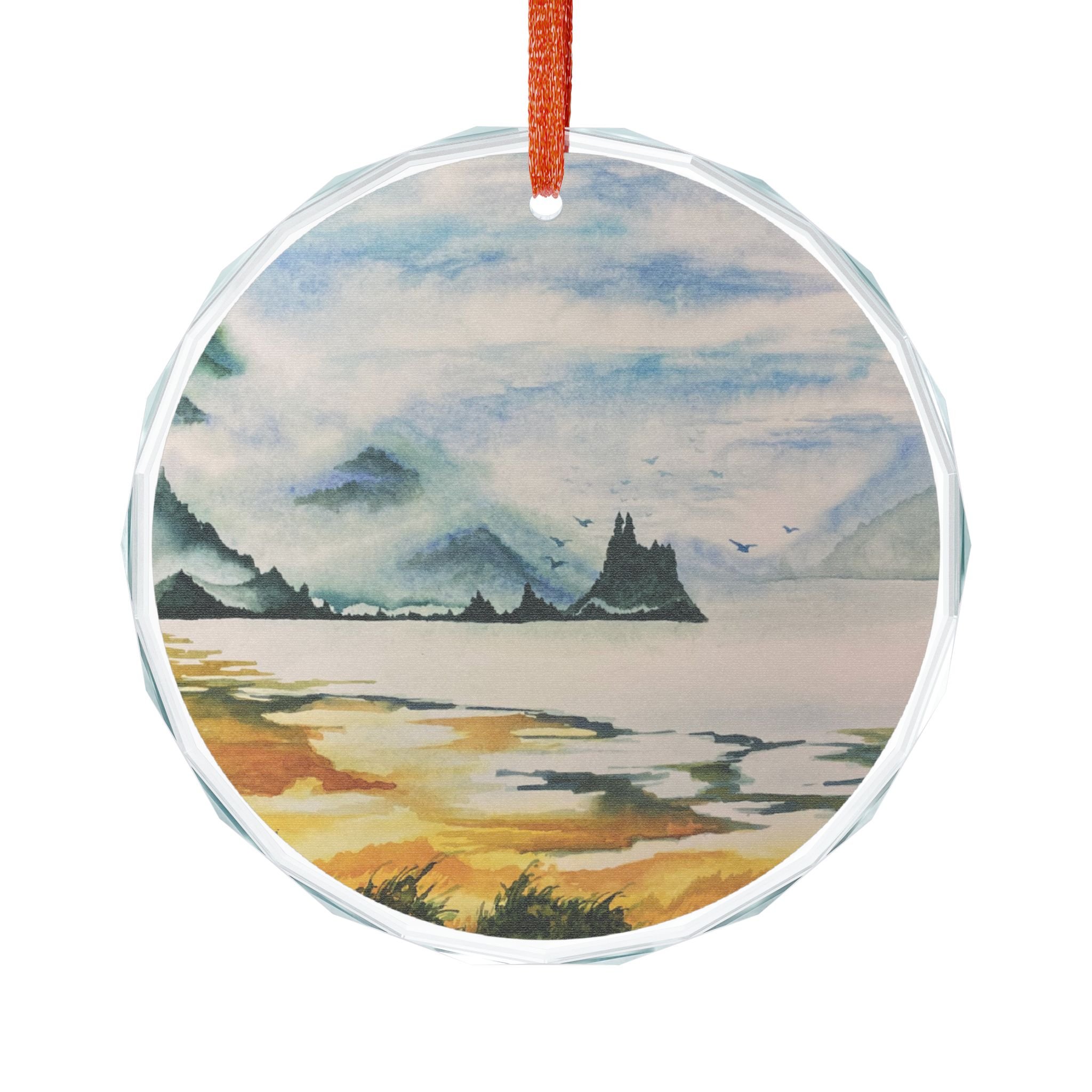 Juneau Island Crystal Ornament — Watercolor Seaside Landscape Keepsake