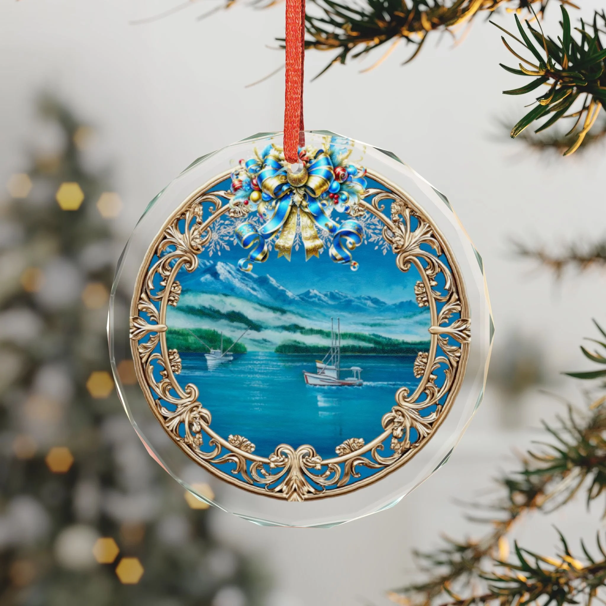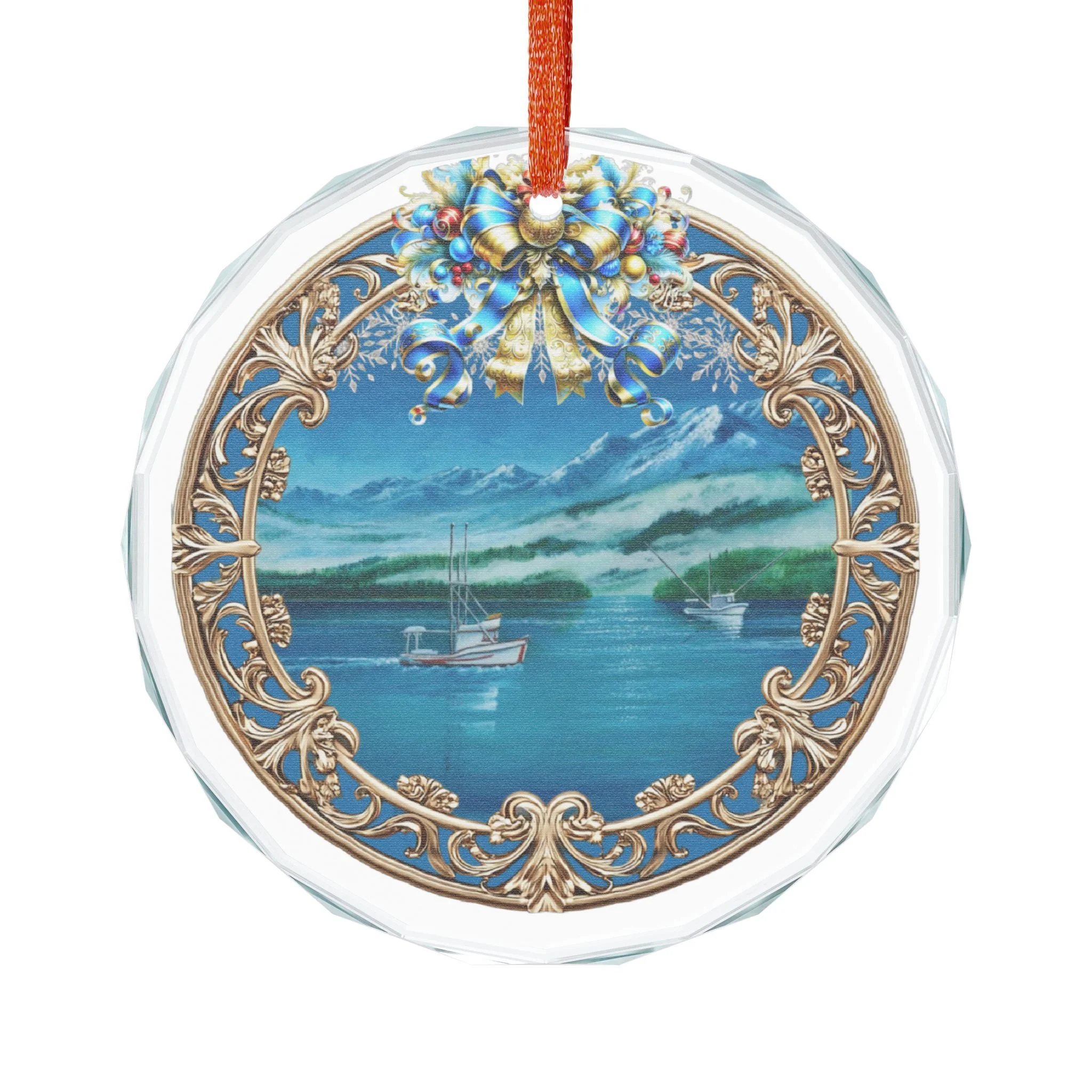 Scenic Crystal Glass Ornament - Nautical Coastal Design for Holiday Décor