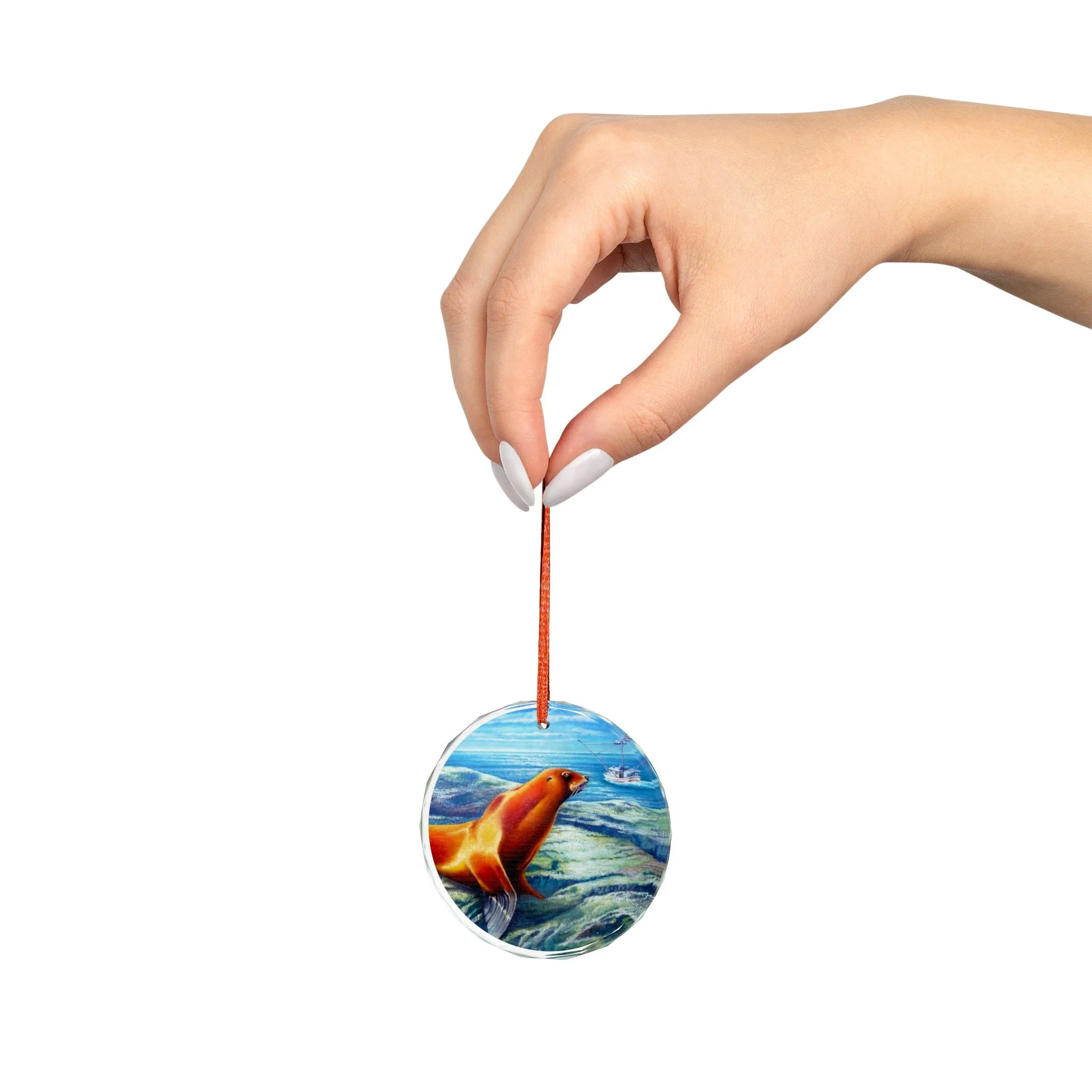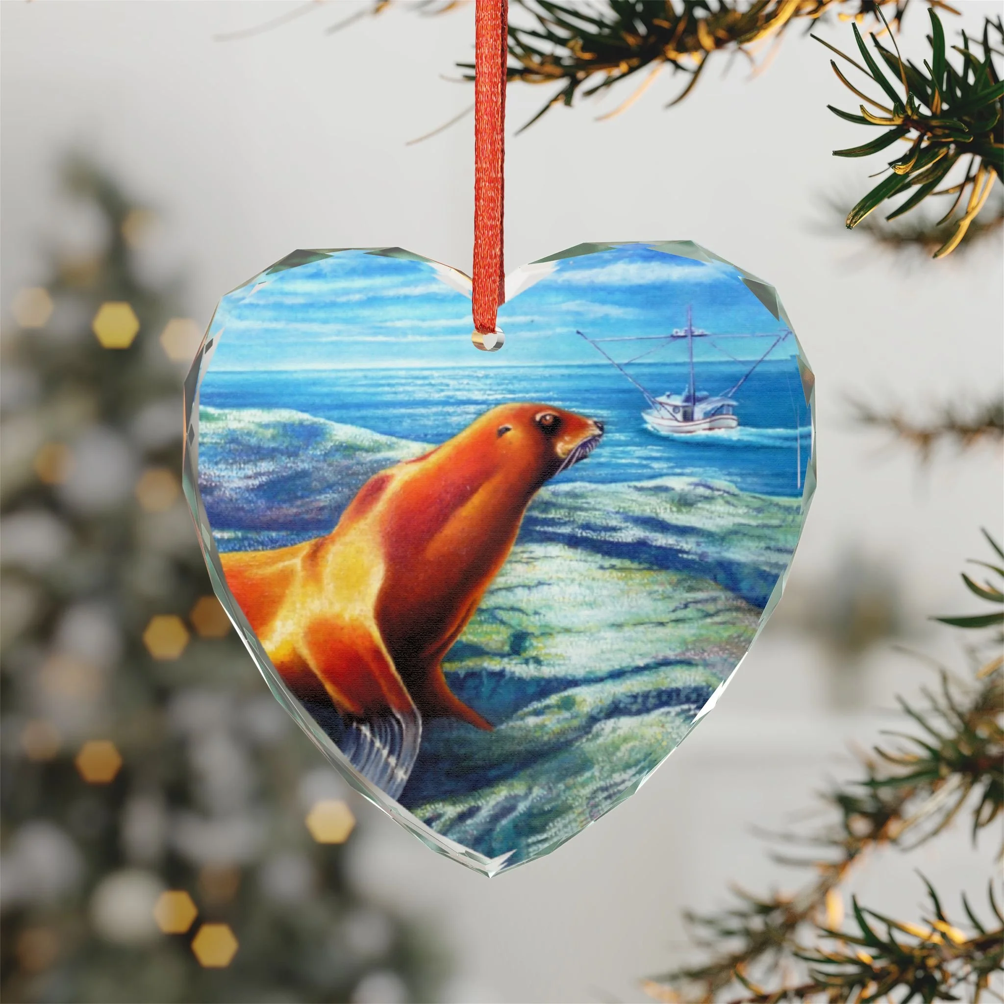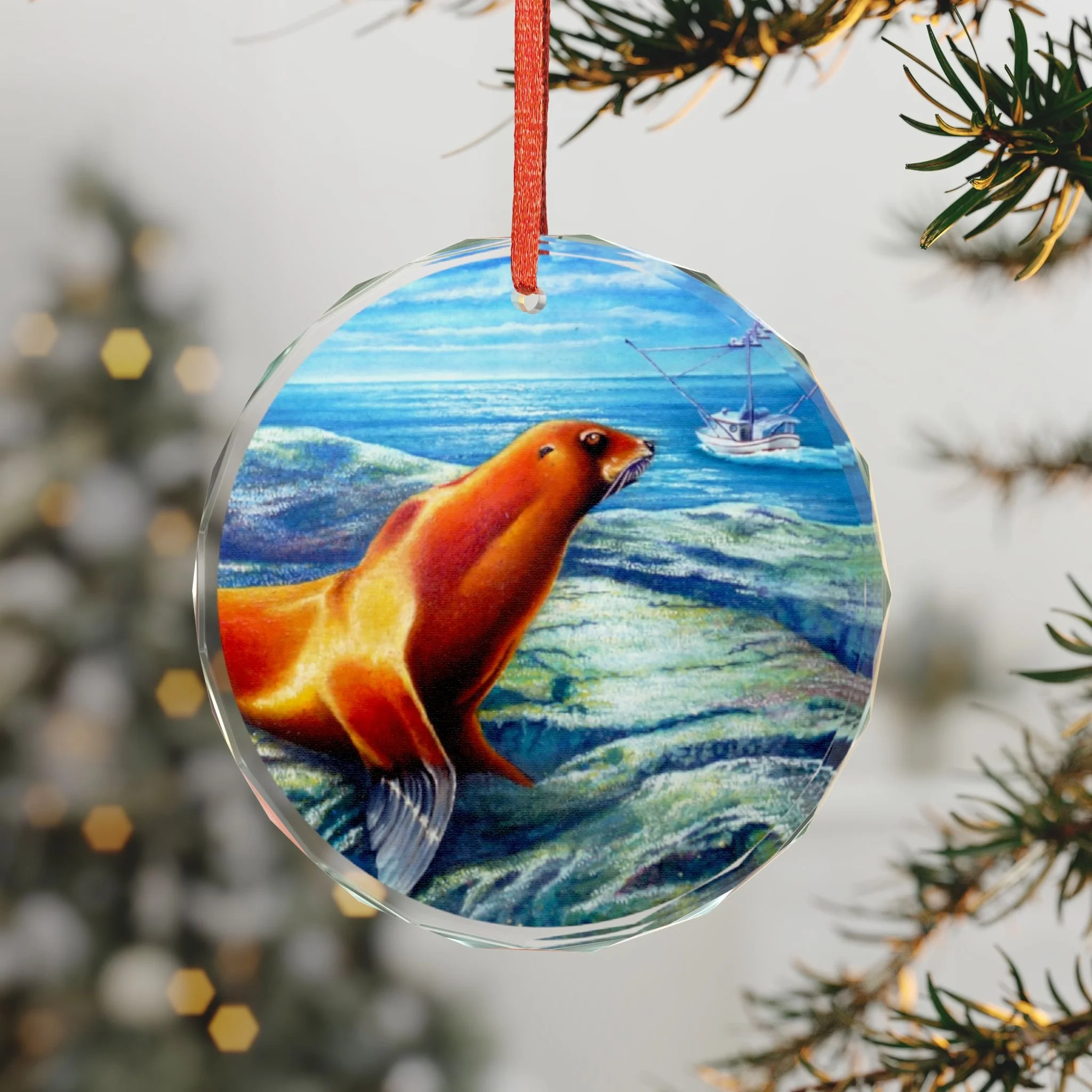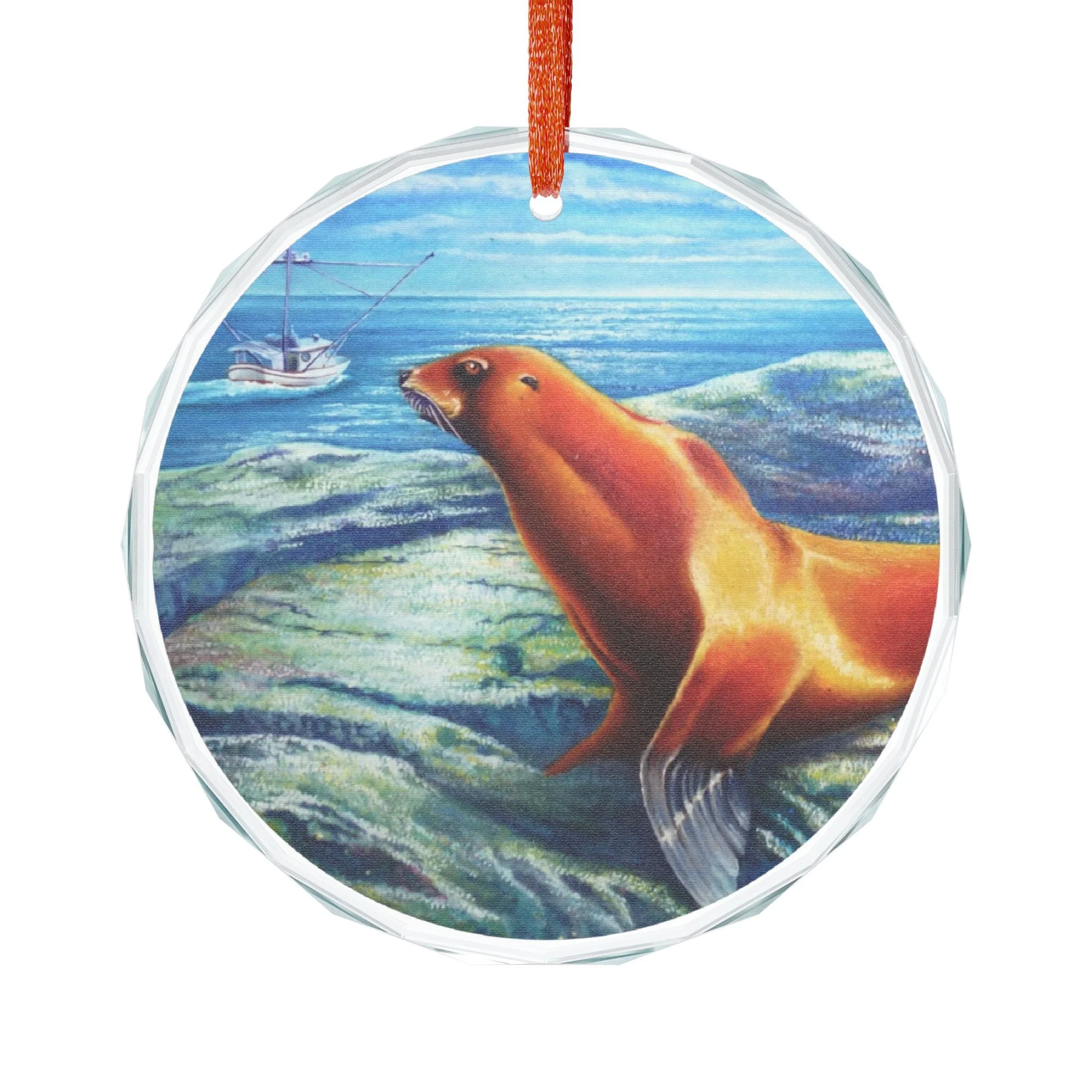 Seal Crystal Ornament — Sea Lion Coastal Glass Holiday Decoration