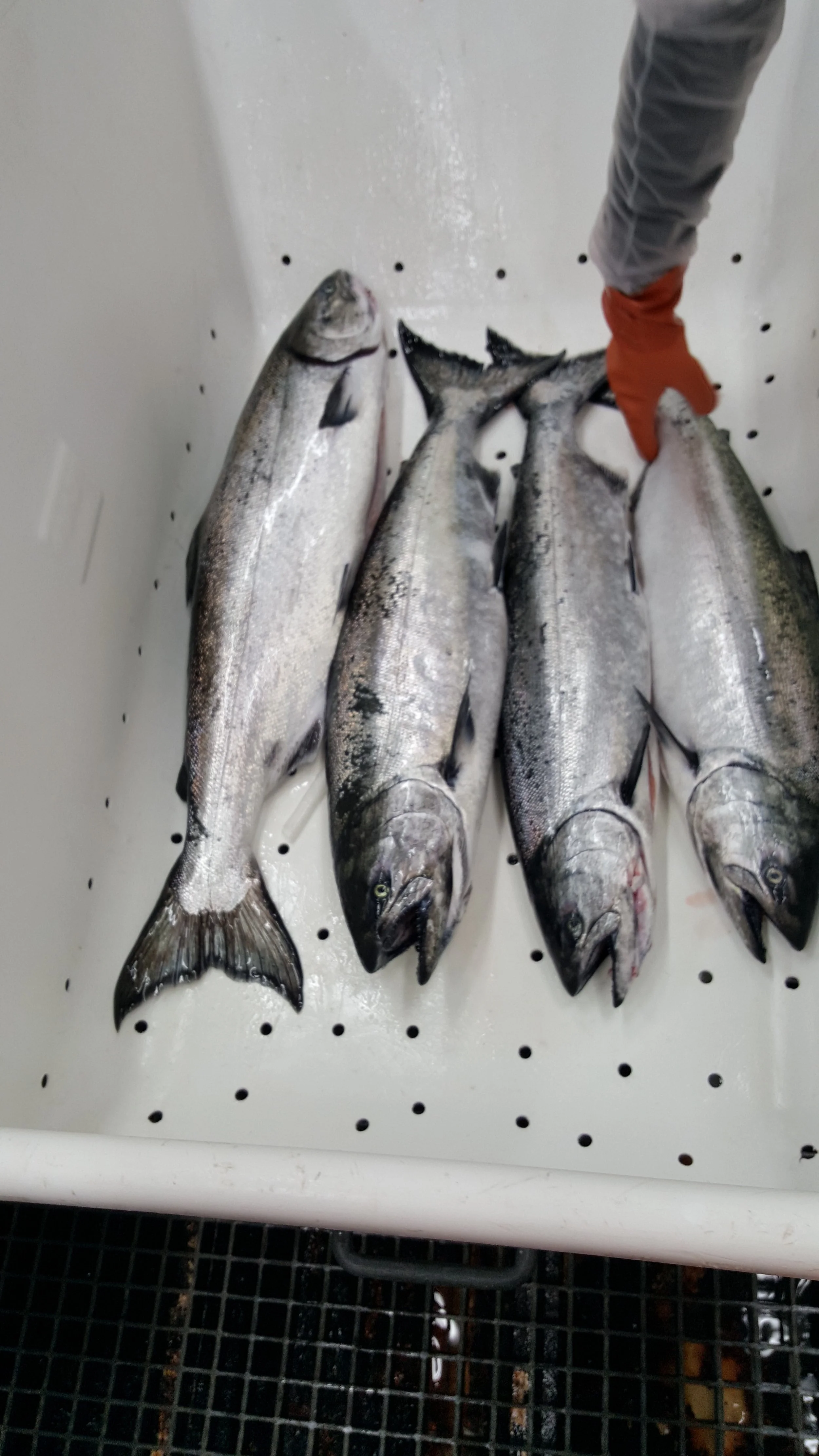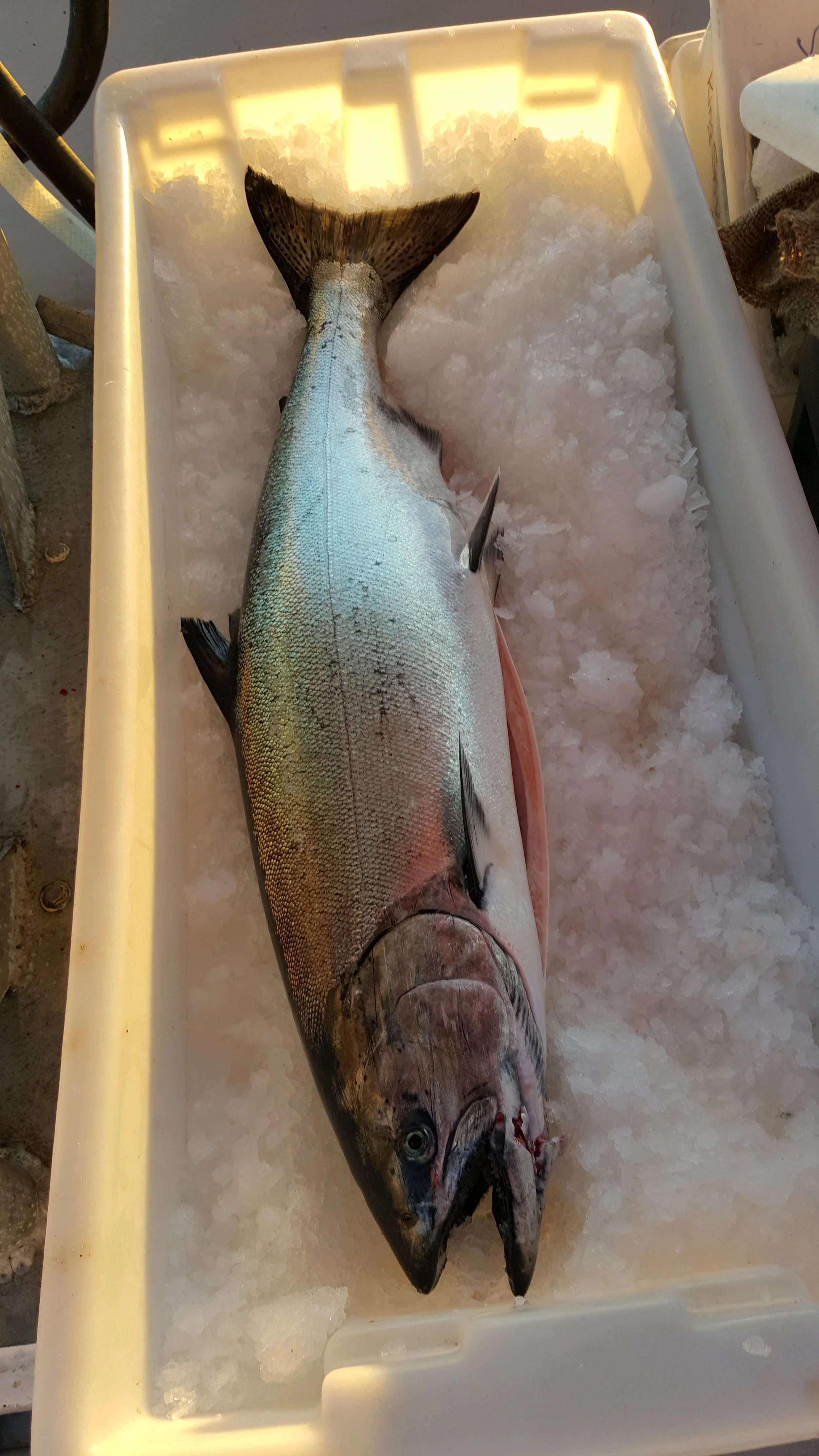 Pointing at the Eagles behind me that like to hang out on the boat. It never gets old to start the day to Eagles singing